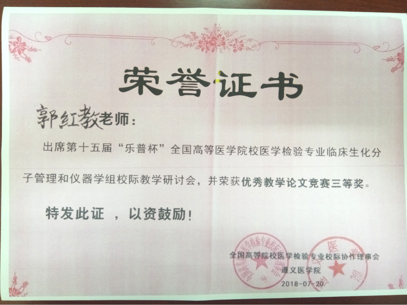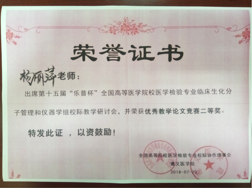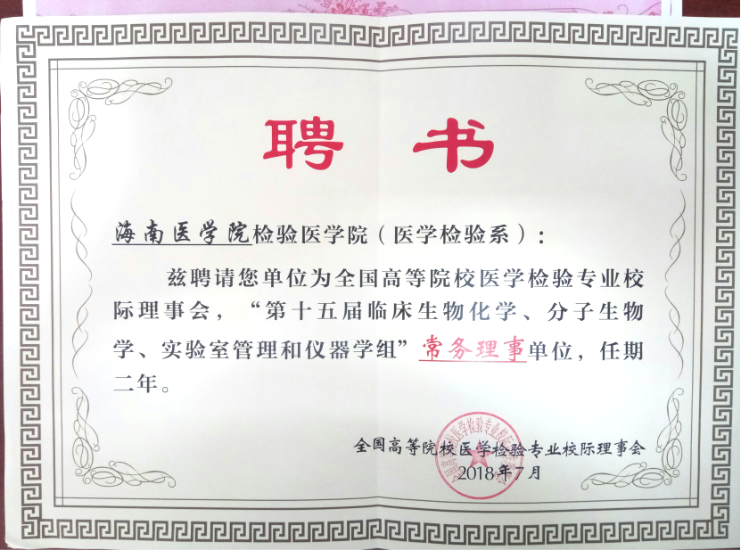 大会还设置了教学论文比赛环节,学院推荐的2篇参会论文分别获教学论文竞赛二等奖和三等奖。热带医学与检验医学院也被聘为全国高等院校医学检验专业校际理事会,“第十五届临床生物化学、分子生物学、实验室管理和仪器学组”常务理事单位。