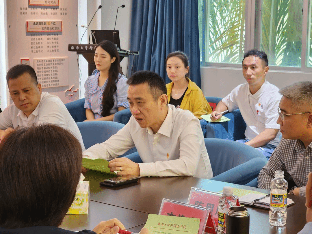 经验交流会上,双方进行了亲切的交流,由海南大学外国语学院党委委员、党政办公室主任符壮慈致欢迎词。随后,符壮慈从支部设置与架构、建章立制、党员品牌活动、工会工作等方面向大家介绍了海大外国语学院党建工作标杆院系建设情况。