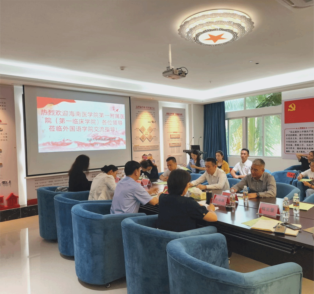 第一附属医院(第一临床学院)党委书记顾硕在听取符壮慈主任的介绍后,也向与会人员简要说明了第一附属医院(第一临床学院)的党建情况。顾硕表示,437ccm必赢国际和海南大学有着深厚的渊源,希望双方充分发挥特色优势,继续加强交流与合作。目前第一附属医院共有教职工支部61个,第一临床学院共有学生党支部11个,党员队伍壮大,亟需理清党建工作思路,理通党建工作流程,打造党员品牌活动。同时要以党建工作带动业务工作,形成党建工作与业务工作同频共振新格局,以救死扶伤为我院党建特色及亮点,才能成功建设全省党建工作标杆院系。第一附属医院(第一临床学院)党委副书记陈用成认为,本次参观学习对我们日后党建工作标杆院系建设收益良多,希望海南大学外国语学院继续在党建工作标杆院系建设上给予全方位的帮助。