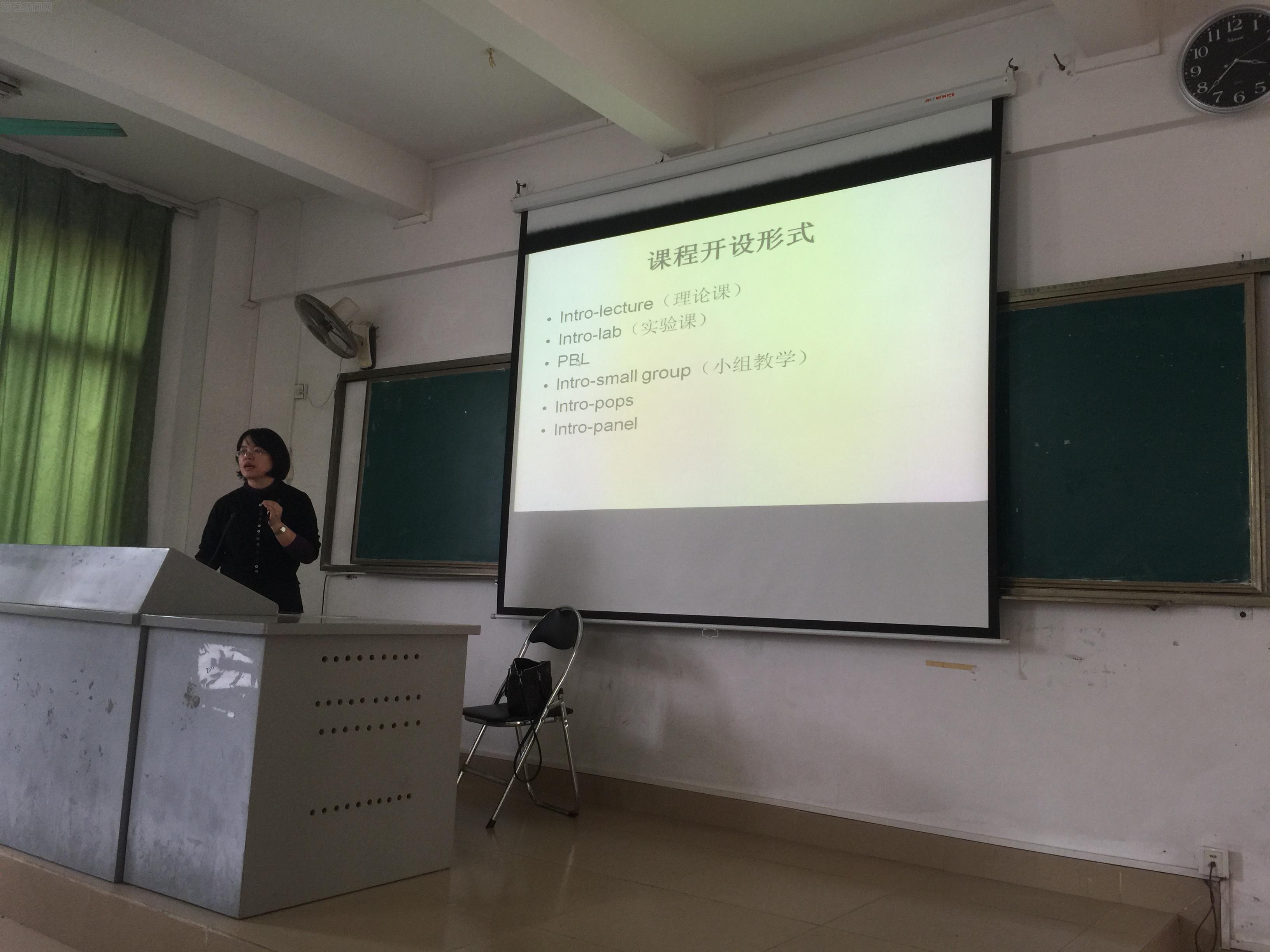 紧接着,牛海艳和张全鹏两位教师分别从内布拉斯加大学的基本情况、医学院课程设置的内容、模块课程设置特点、PBL教学特点、CBL教学特点、人文教育、考试管理等几个方面向大家做了详细的介绍。精彩的报告之后,与会教师反响热烈,积极地针对自身的教学存在的问题与困惑,与回国教师进行了热烈的讨论与交流。