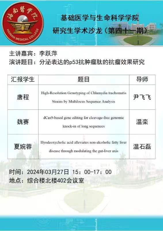 【学术沙龙】第41期:分泌表达的p53抗肿瘤肽的抗瘤效果研究