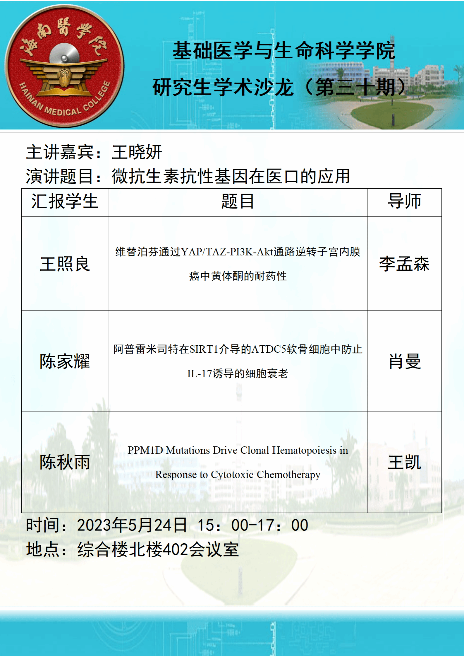【学术沙龙】第30期:微抗生素抗性基因在医口的应用