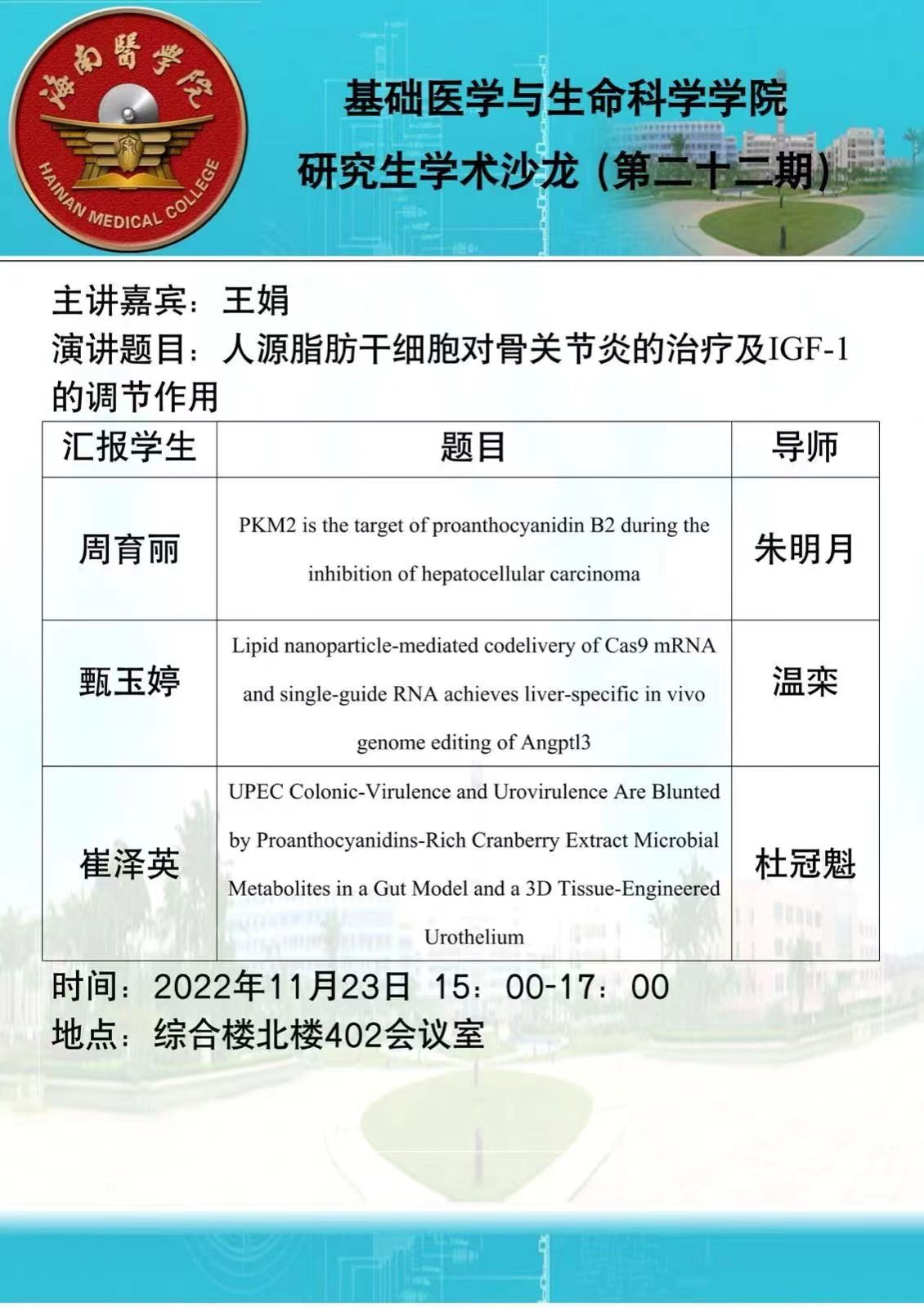 【学术沙龙】第22期:人源脂肪干细胞对骨关节炎的治疗及IGF-1的调节作用