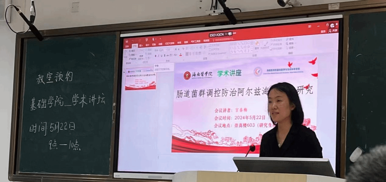 2024年5月22日,437ccm必赢国际基础医学与生命科学学院在崇真楼603举办学术讲坛。新进教师宫春梅博士作了精彩报告,展示了肠道菌群调控防治阿尔兹海默病在医学与生命科学领域的最新研究成果和前沿科学探索。