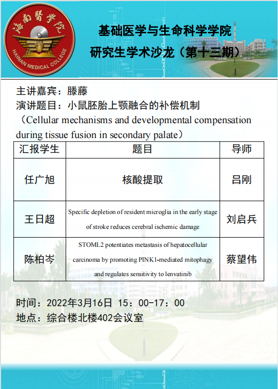 【学术沙龙】第13期:小鼠胚胎上颚融合的补偿机制(Cellular mechanisms and developmental compensation during tissue fusion in secondary palate )