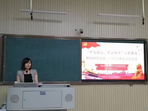 最后周代锋书记针对本次动员会做总结发言。周代锋书记先表示易西南院长分析了近几年学院国科金申报的情况,并对2020年国科金申报工作作出全面的部署;邬强副处长从国科金申报评审流程、政策等角度给大家进行了梳理和解读;肖乐博士则以自身实战为例子向大家介绍了国科金标书撰写的经验技巧相信大家通过这几个讲座对国科金的申报和撰写有了更加明确的方向,也增强了大家申报国科金的信心。江朝娜主任就期中教学检查进行了部署,这项工作和我校12月份更名大学密切相关,希望各教研室和各位老师也要高度重视,做好相关工作,我院督导组也会加强督导。