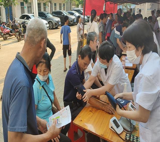 2024年4月20日上午,基础医学与生命科学学院药理学教研室的刘月丽、李佩琼、林明琴、黄伟、赵伟楠老师组建了一支专业的安全用药咨询团队,携手民盟海医支部,共同前往澄迈县桥头镇,开展了一场别开生面的健康知识科普活动。此次活动旨在为广大群众提供免费的血压测量、高血压用药咨询以及健康教育等服务,通过实际行动践行社会责任,传递健康理念。
