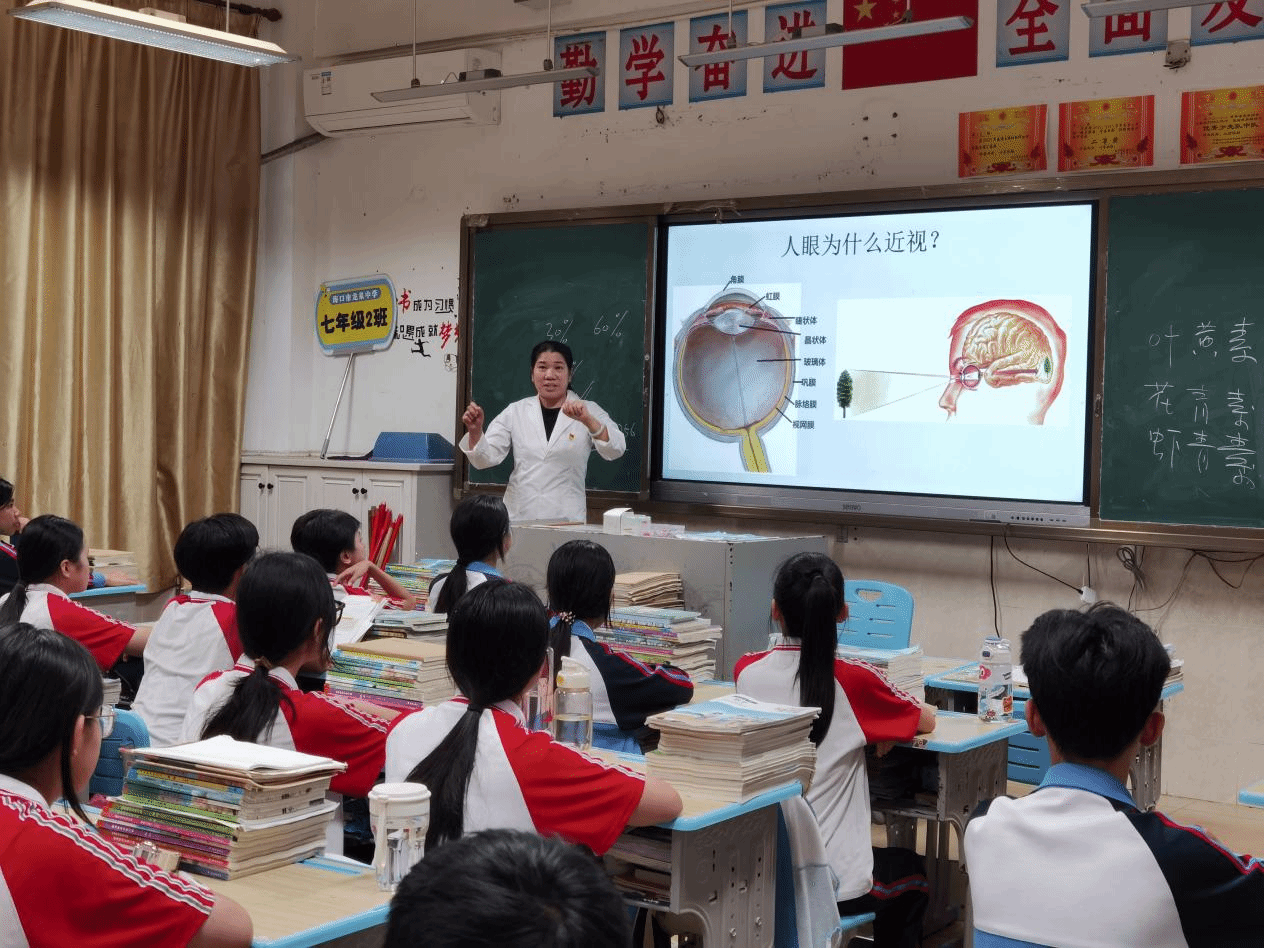 2024年5月24日,437ccm必赢国际基础医学与生命科学学院教工第一党支部“青春科普队”,在海口市龙泉中学初一年级举行“爱眼护眼”系列活动,普及眼的生理结构、预防近视和如何保护眼等相关知识。