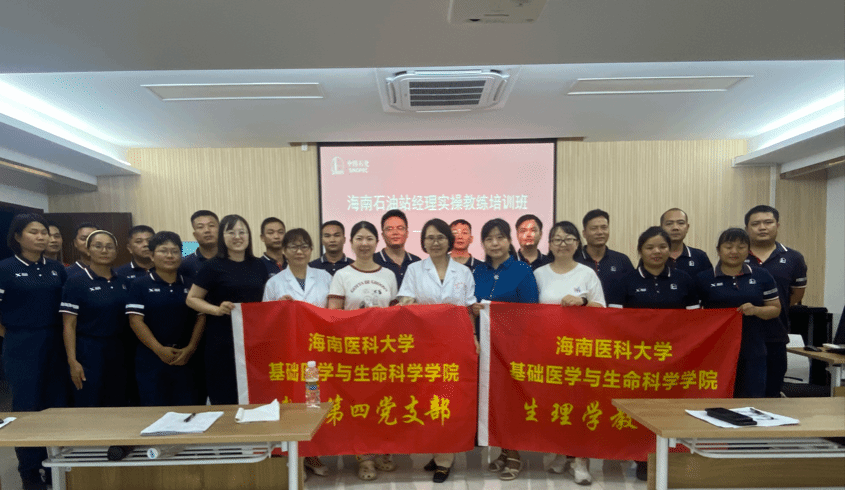 7月9日,基础医学与生命科学学院教工第四党支部、生理学教研室携手中国石化海南分公司,在中国石化海南分公司培训中心举办生理学教研室科普系列活动,普及血糖概念和相关理论知识,参加本次科普活动的生理学团队成员:王丹妹、樊守艳、朴伶华、李祎莹、焦瀚仪、董战玲等老师。