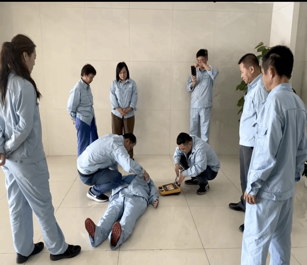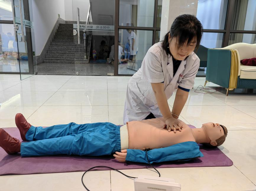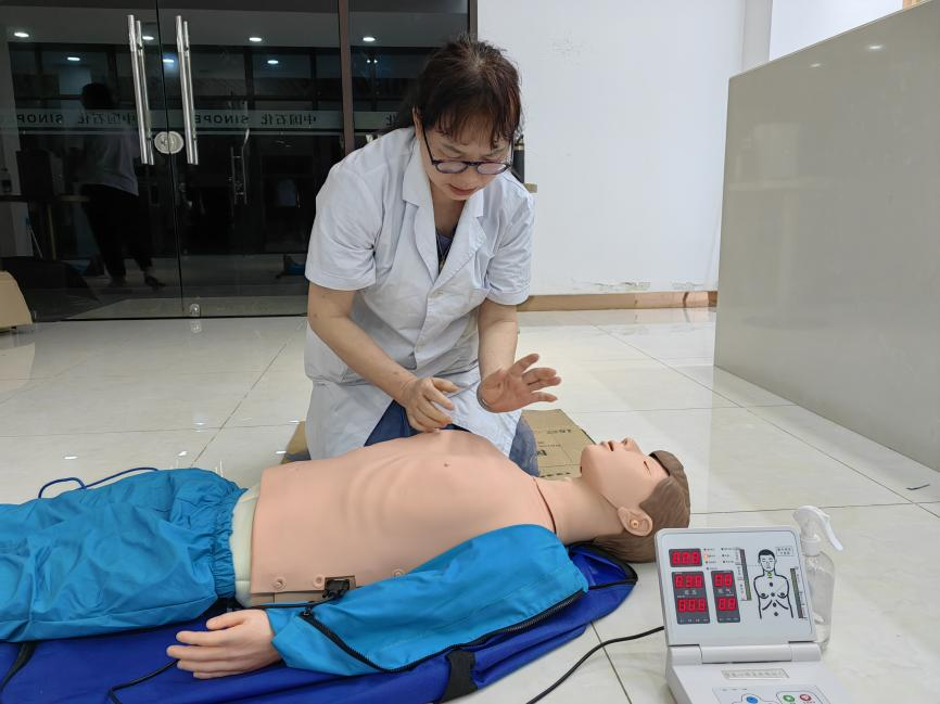 为了让理论知识更好地转化为实践能力,活动特别设置了实操演练环节。在团队成员的指导下,中国石化海南分公司的员工们分组进行心肺复苏术的实践操作,从判断意识、启动紧急反应系统、胸外按压到开放气道、人工呼吸,每一步都力求规范、准确。通过反复练习,员工们的急救技能得到了显著提升。