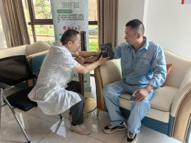 讲座结束后,血压测量区成为了活动的焦点。教师们分工合作,为油库的工作人员逐一测量血压。他们耐心指导市民如何正确测量血压,并根据测量结果提供初步的健康建议。对于血压偏高的工作人员,他们更是详细询问生活习惯,给出个性化的饮食和运动的防治建议。