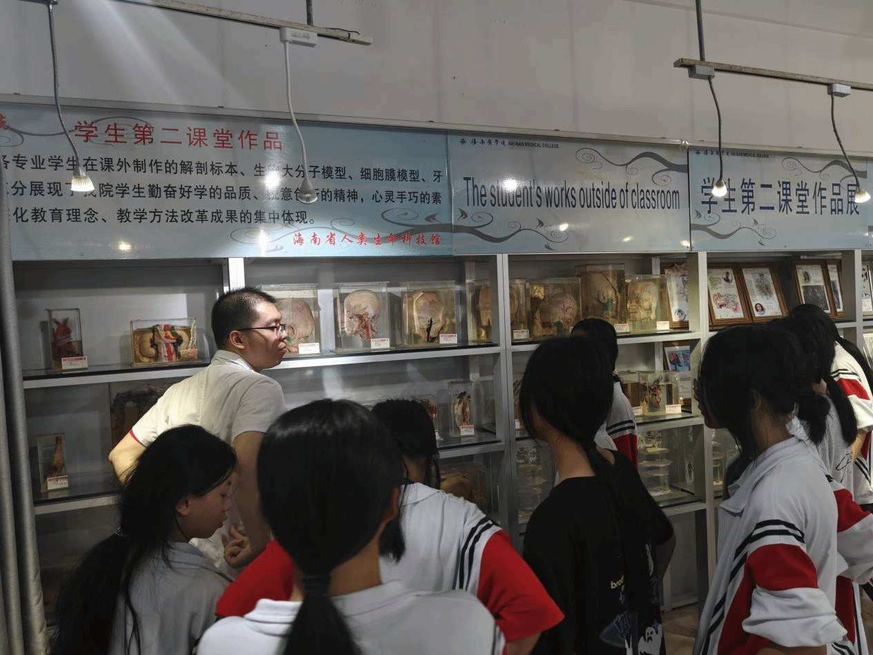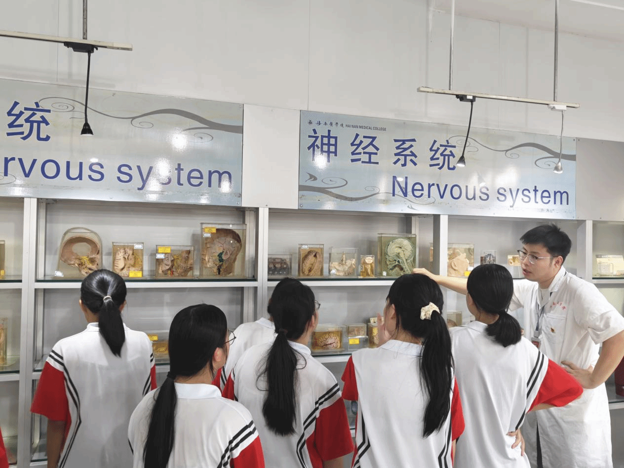 农业学校学生来到生命科技馆,更加清晰地了解到生命科学和生物制药领域的前沿技术和研究成果。通过观摩人体解剖标本和生物标本,加深了学生对生物结构和功能的理解。在参观的同时与海医本校学生进行互动交流,分享学习经验和心得。