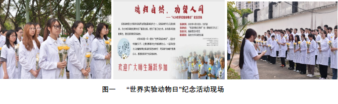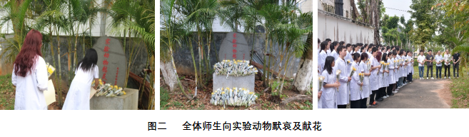 随后,全体师生在实验动物纪念碑前举行了简朴而又庄重的默哀和献花仪式,共同祭奠为人类医学事业做出伟大贡献的实验动物们。