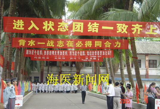 当临床学院、附属医院院长孙公凯从医学院党委书记李永春双手接过那沉甸甸的责任状的时候,其表情是那样的沉着、冷静而严峻,但广大师生一阵接一阵的掌声已很好地证明了一切。尤其是孙院长那一声一顿的动员令,一下子把广大师生员工带入临阵前沿,他掷地有声地说,迎评的成败,关系到学院和医院的前途,关系到每一位海医人的切身利益,可谓是生死攸关。我们已没有退路,只能是迎难而上,背水一战,誓夺胜利。