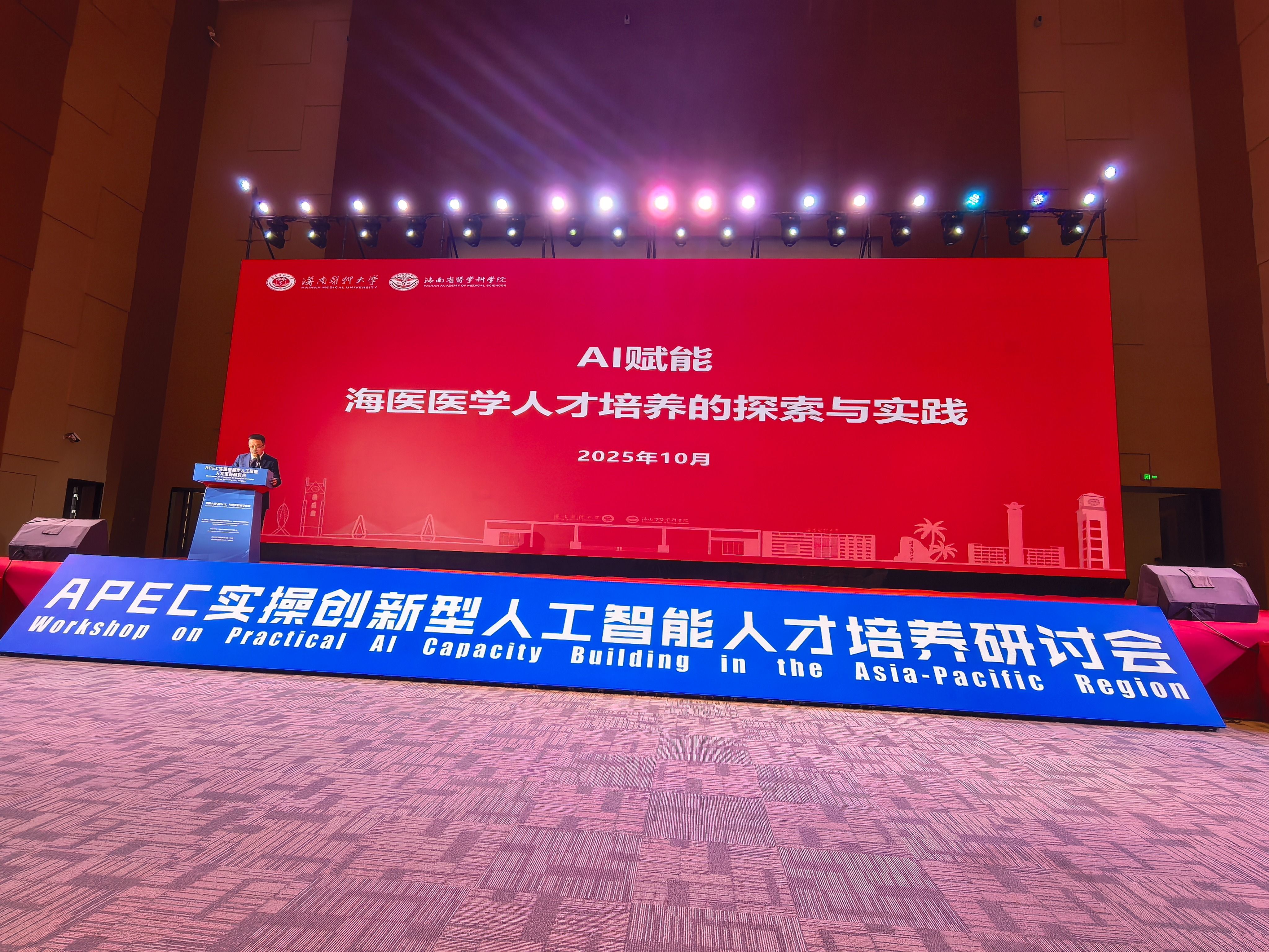 10月24日,我校受邀参加国家工业信息安全发展研究中心与海南软件职业技术学院联合主办的“培育AI实操人才,共建美好数字未来”—APEC实操创新型人工智能人才培养研讨会。会上,学校智能医学与技术学院(大数据研究中心)应用技术开发部主任吴京朋作题为“AI赋能海医医学人才培养的探索与实践”的主题演讲,系统分享了我校在医学人工智能教育方面的创新成果与实践经验。