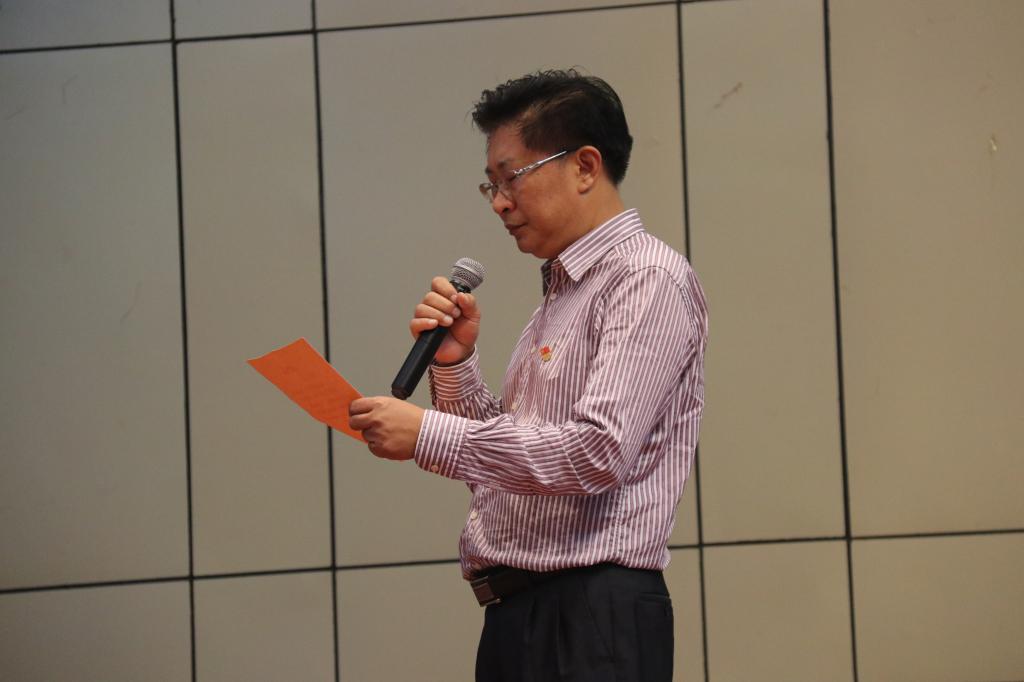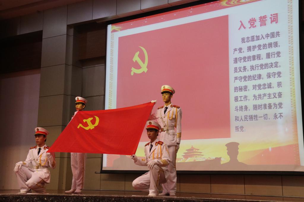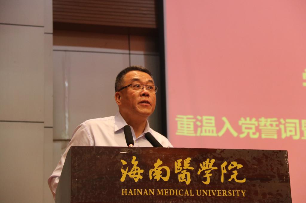 党委副书记谢江波首先带领在场的全体师生员工党员面对党旗重温了入党誓词