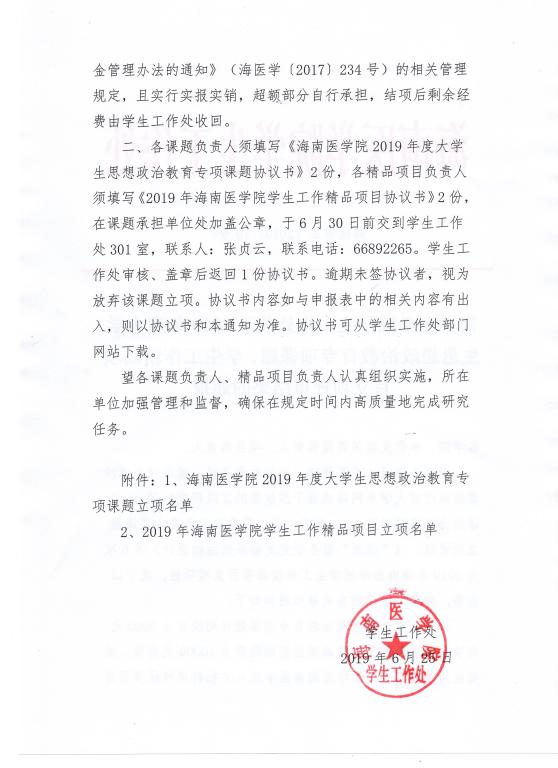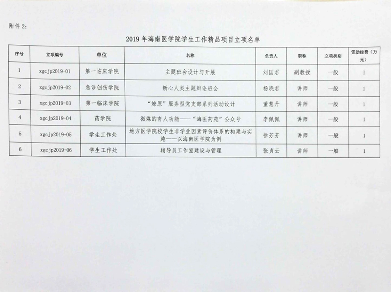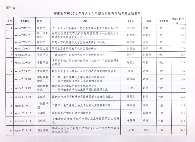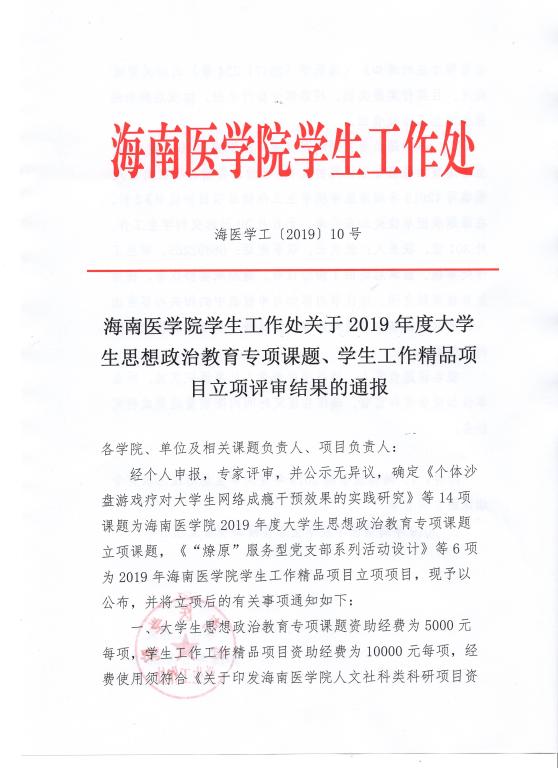 我校学生工作处关于2019年度大学生思想政治教育专项课题、学生工作精品项目立项评审结果的通报