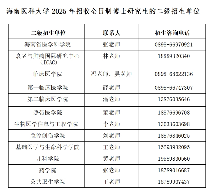 《海南医科大学2025年第二批全日制博士研究生招生公告 (申请-考核制)》,网址: