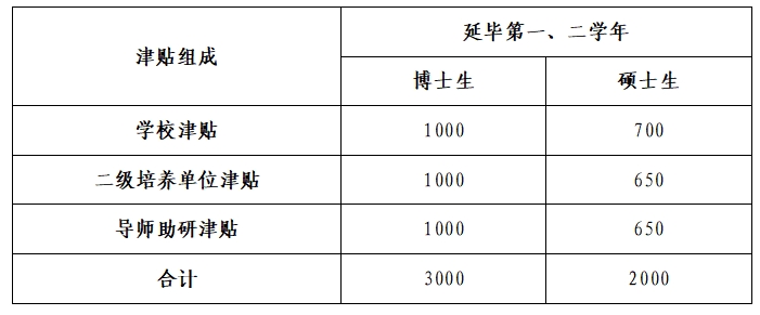 符合优秀等级延期毕业研究生津贴资助标准(单位:元/月/生)