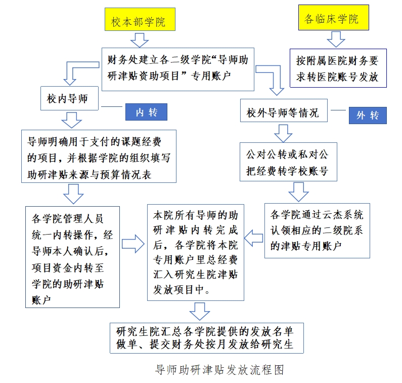 根据《海南医科大学研究生导师岗位职责管理细则》(海医发〔2024〕62号),“导师必须根据学校规定从科研项目经费中提供充足的培养业务费,保障研究生从事科学研究、完成各环节的培养任务并按时发放助研津贴(每学年按12个月计)。”现将导师发放研究生助研津贴的方式说明如下: