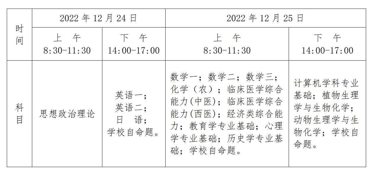 1.考试时间及科目安排