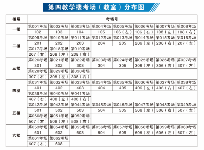 (4)标注3为第四教学楼(崇民楼)。此楼1-6楼全部为普通考场,考生需从北侧大厅验证身份后,再通过楼梯到达各考场。