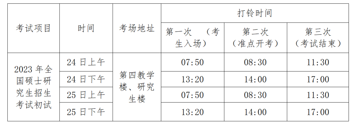 2.考试打铃安排:每场考试共有3次,具体见下表: