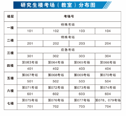 (3)标注2为研究生楼(崇真楼)。此楼1-2楼为特殊考场,3楼为应急考场,4-7楼为普通考场。1-3楼考生走专用特殊通道,4-7楼考生从一楼大厅验证身份后可使用电梯或楼梯(该楼电梯和步行楼梯不通往2、3楼)到达考场。