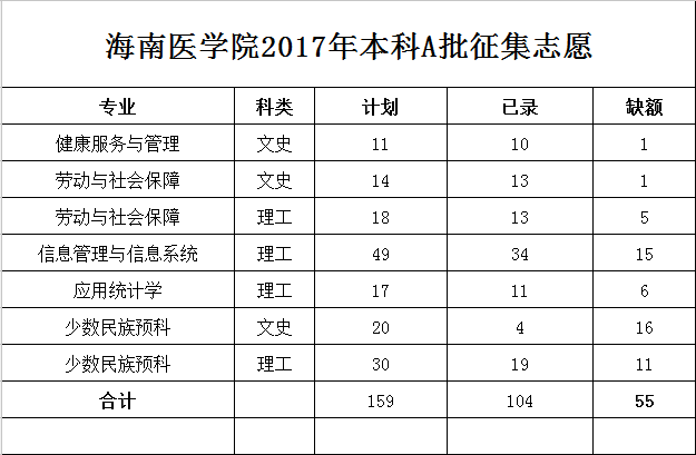 海南省2017年普通高校招生本科A批征集志愿的公告