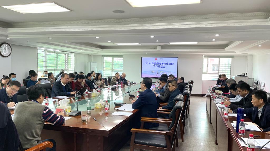 2022年1月12日上午,我校召开了2021年普通高考招生录取工作总结会议。黄元华副校长出席会议,各二级学院党委书记、院长,相关职能部门负责人参加会议。会议由李其富处长主持。