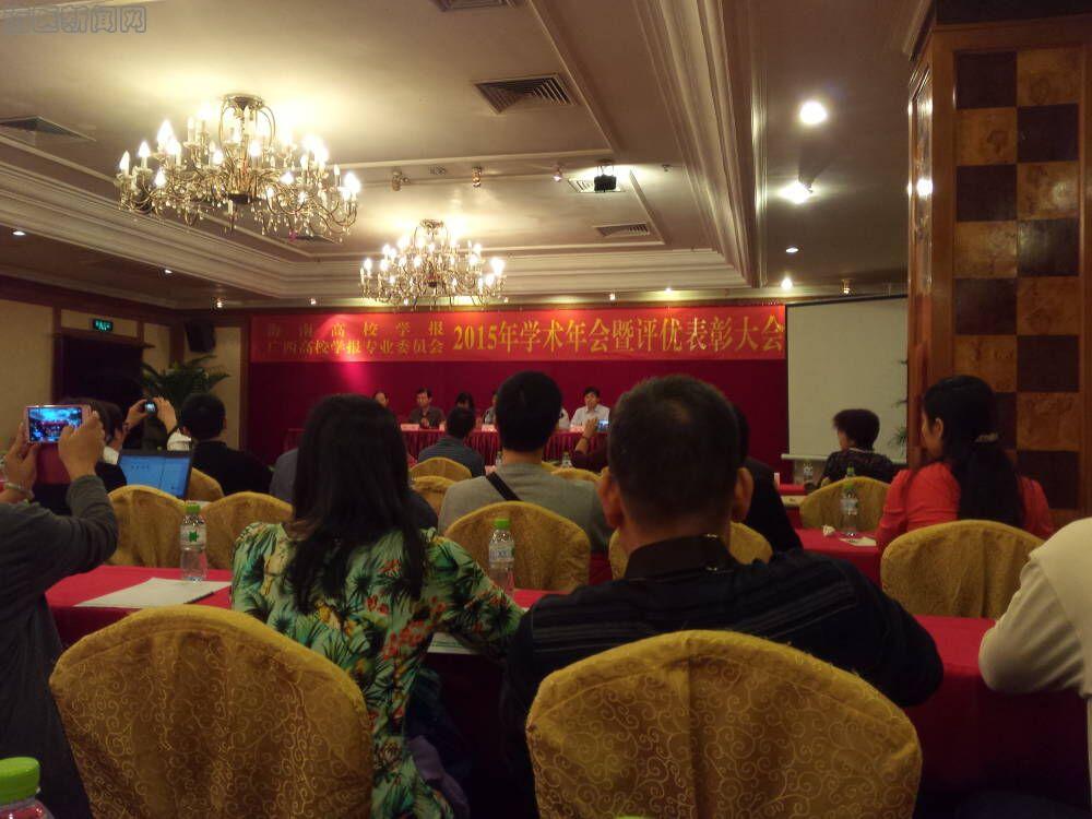 由广西高等教育学会学报专业委员会与海南高校学报联合召开的2015年广西、海南高校学报学术研讨会暨评优颁奖大会2015年11月26-30日在海南省海口市举行。我校副院长曾渝教授、海南省文体厅报刊处陈一新处长出席了大会开幕式并致辞。我社全体成员和来自广西、海南高校学报的主编和编辑共100多人参加了本次大会。