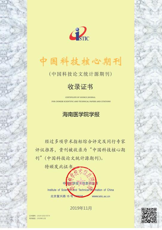 2019年11月19日,根据中国科学技术信息研究所公布的《中国科技期刊引证报告(核心版)》的数据,全国高等医学院校学报中进入核心版有56种,《我校学报》核心总被引频次2745,排名第1位,综合评分73.6,排名第2位,核心影响因子0.912,排名第7位。