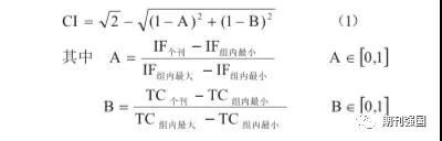 学术期刊影响力指数(Academic Journal Clout Index,简称 CI),是反映一组期刊中各刊影响力大小 的综合指标,它是将期刊在统计年的总被引频次(TC)和影响因子(IF)双指标进行组内线性归一后向量平权计算所得的数值,用于对组内期刊排序。