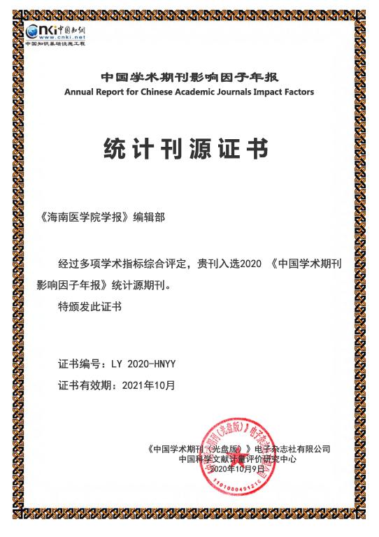 近日获悉,由中国知网公布的《中国学术期刊影响因子年报(自然科学与工程技术2020版)》数据中显示,《我校学报》在212种综合性医药卫生类期刊中,期刊影响力指数为790.387,排名第9位;影响因子1.393,排名第8位。并经过多项学术指标综合评定,《学报》入选2020《中国学术期刊影响因子年报》统计源期刊,位列Q1区。